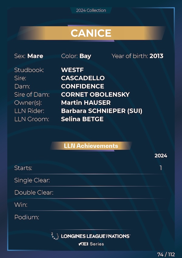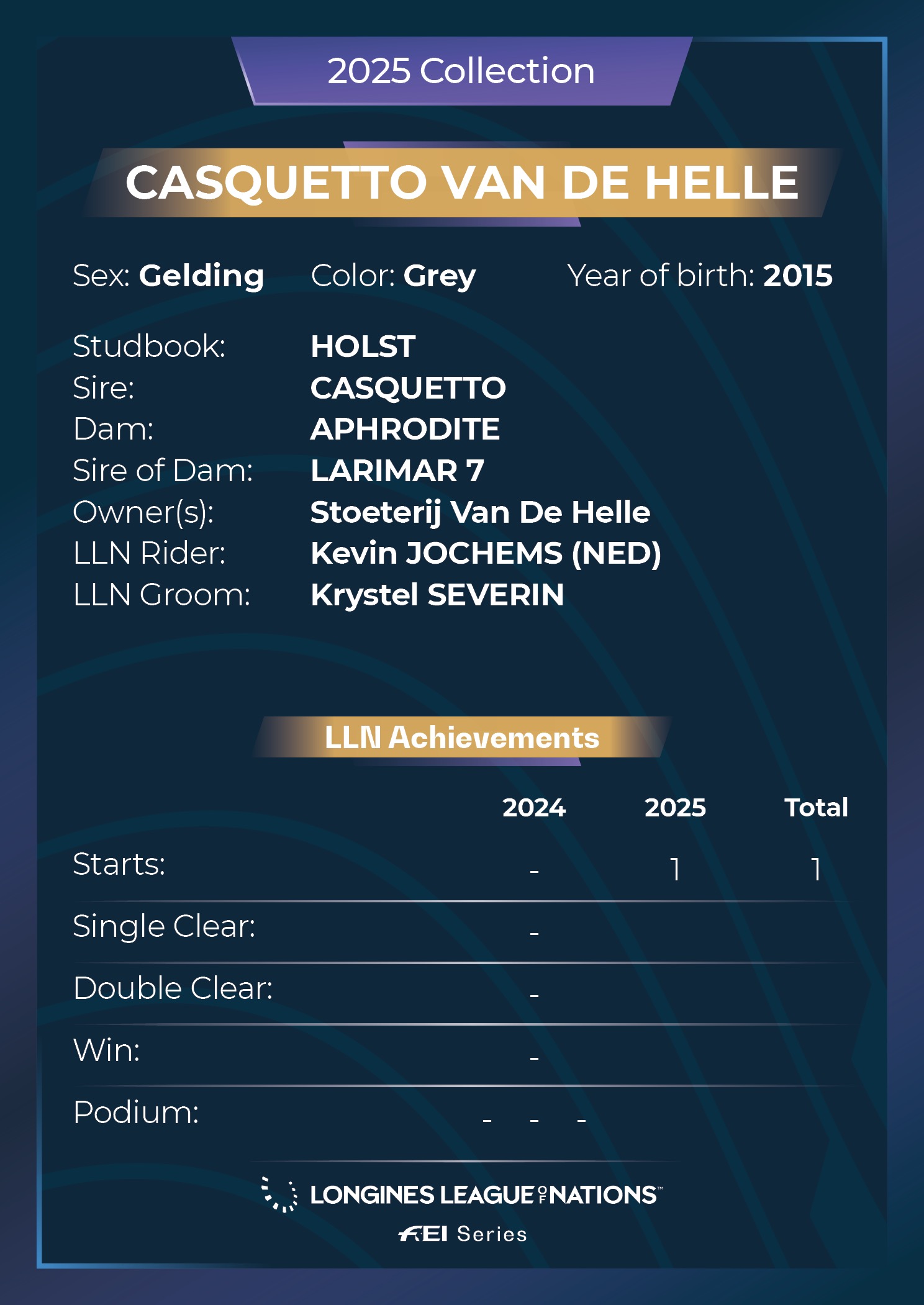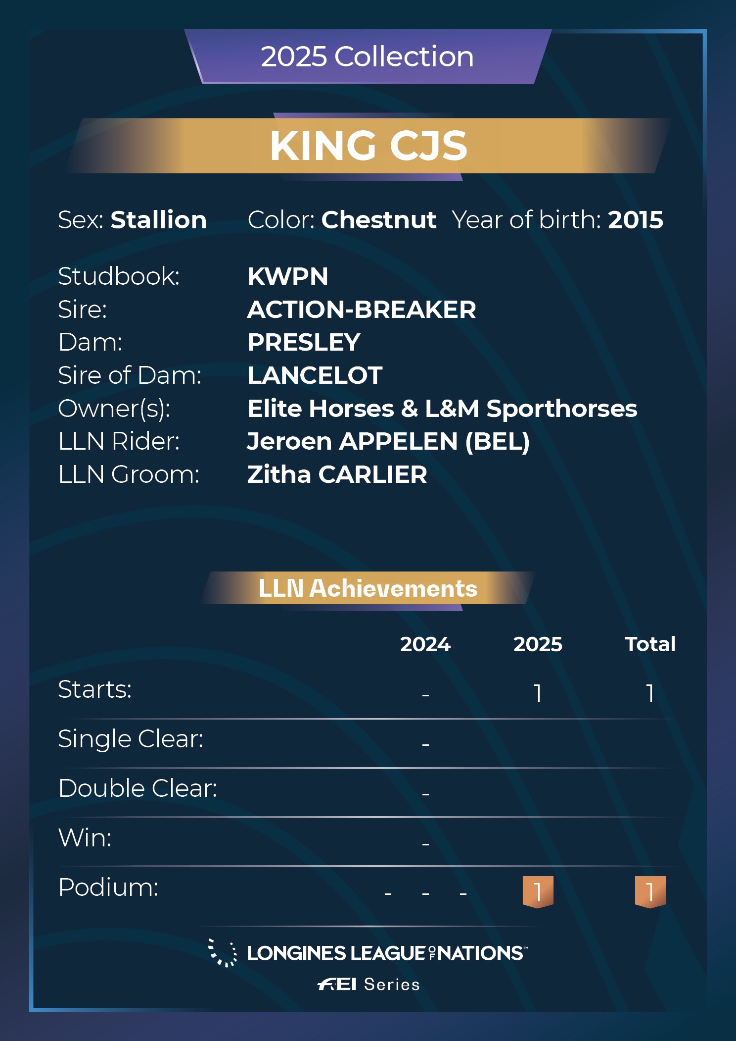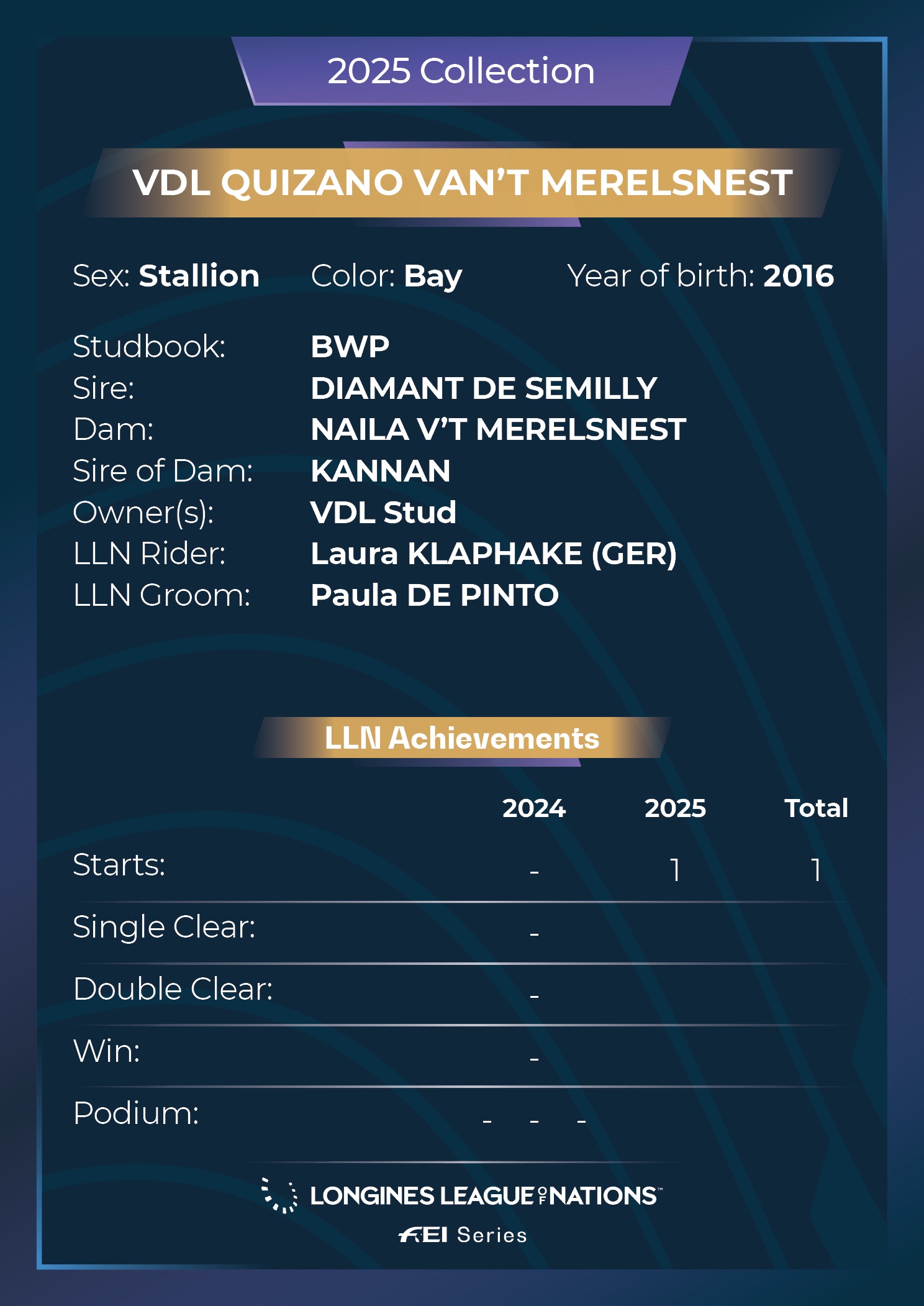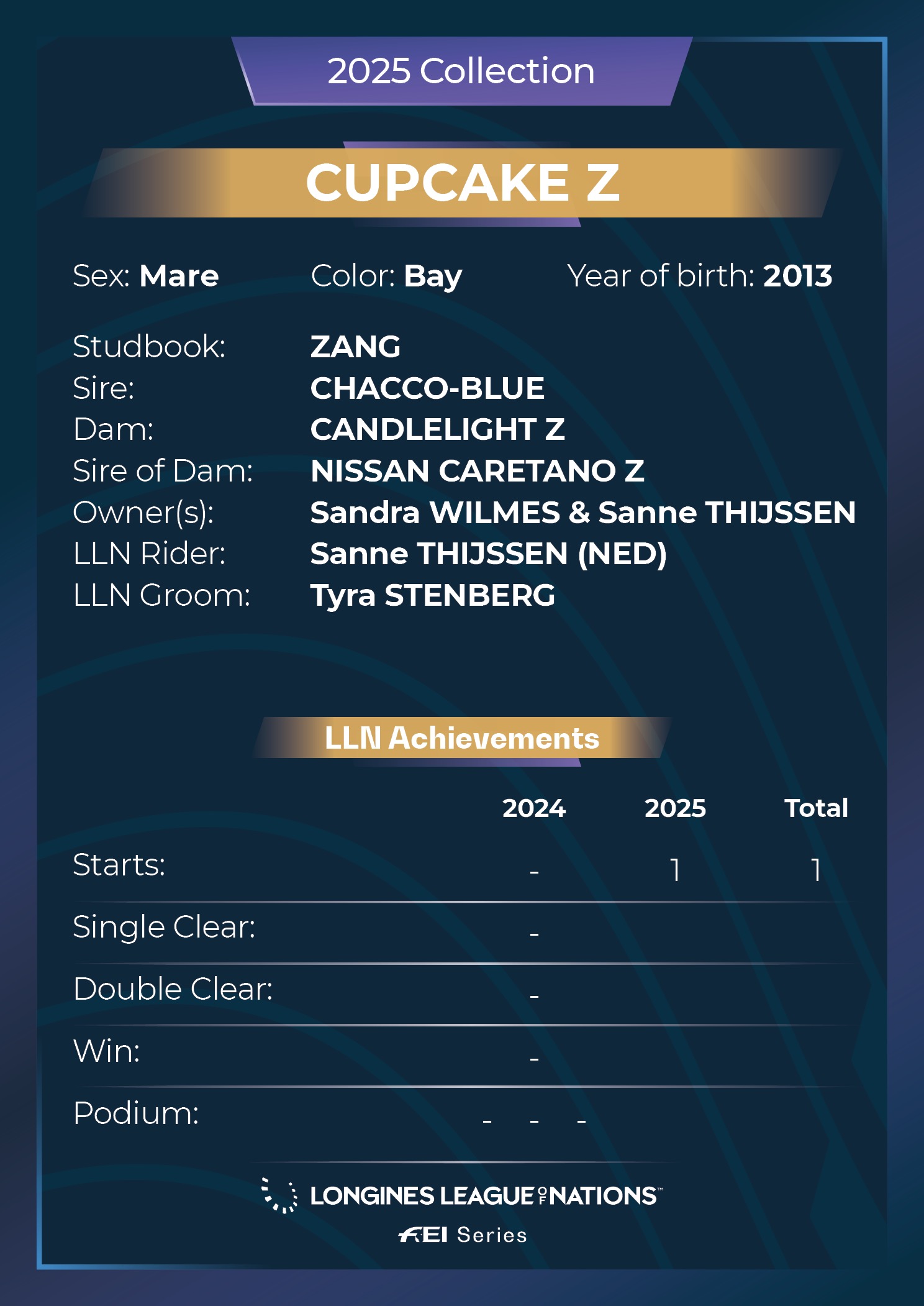 Get to know our Longines League of Nations™ horses and their competition stats.