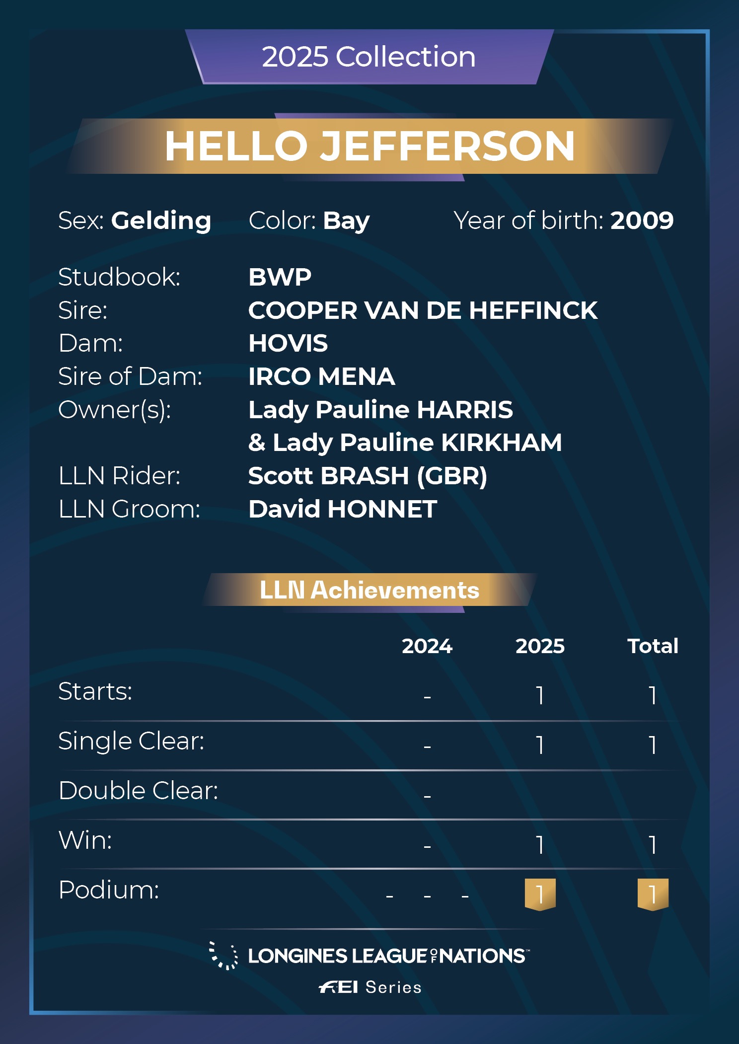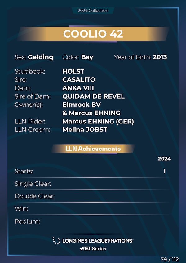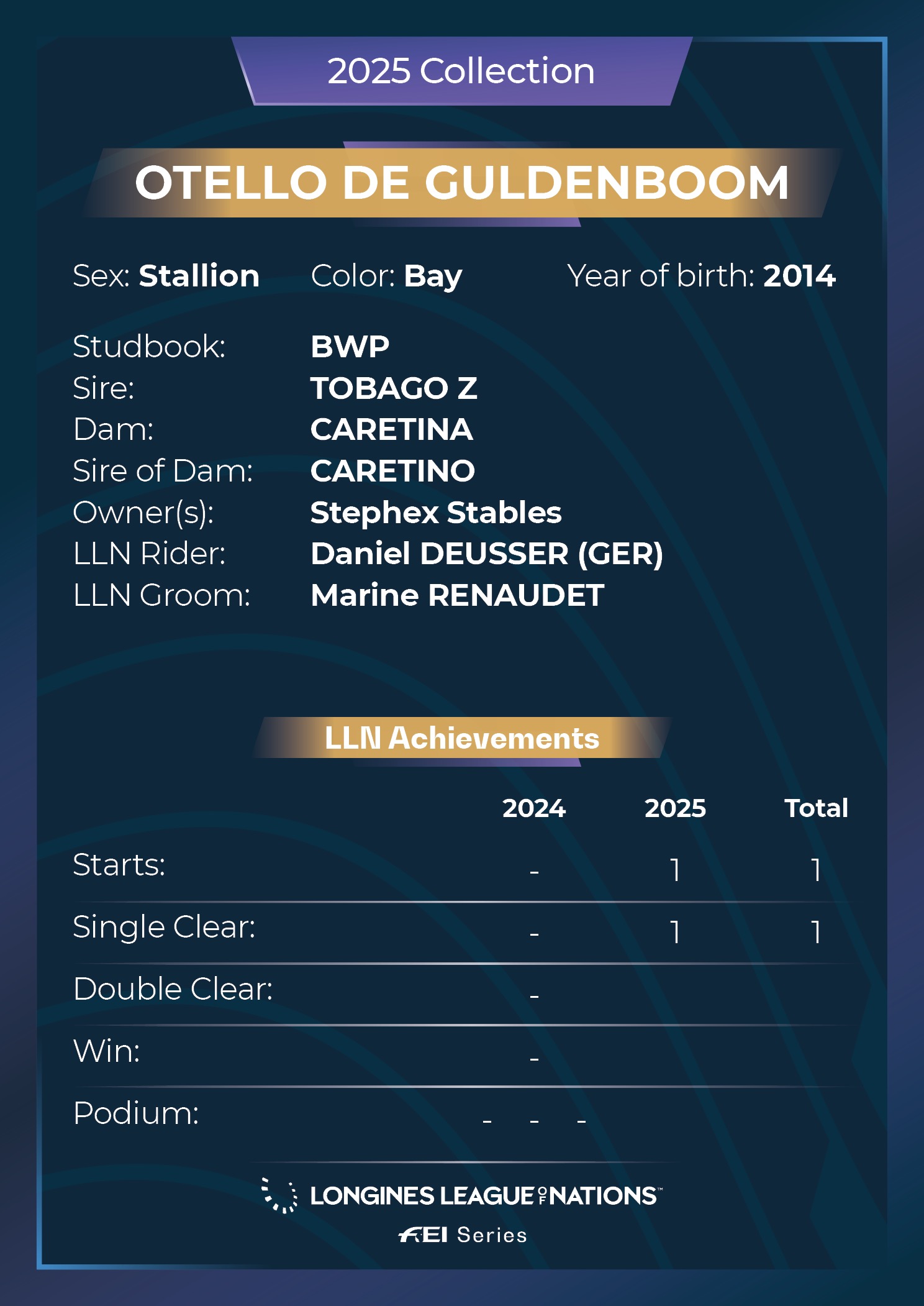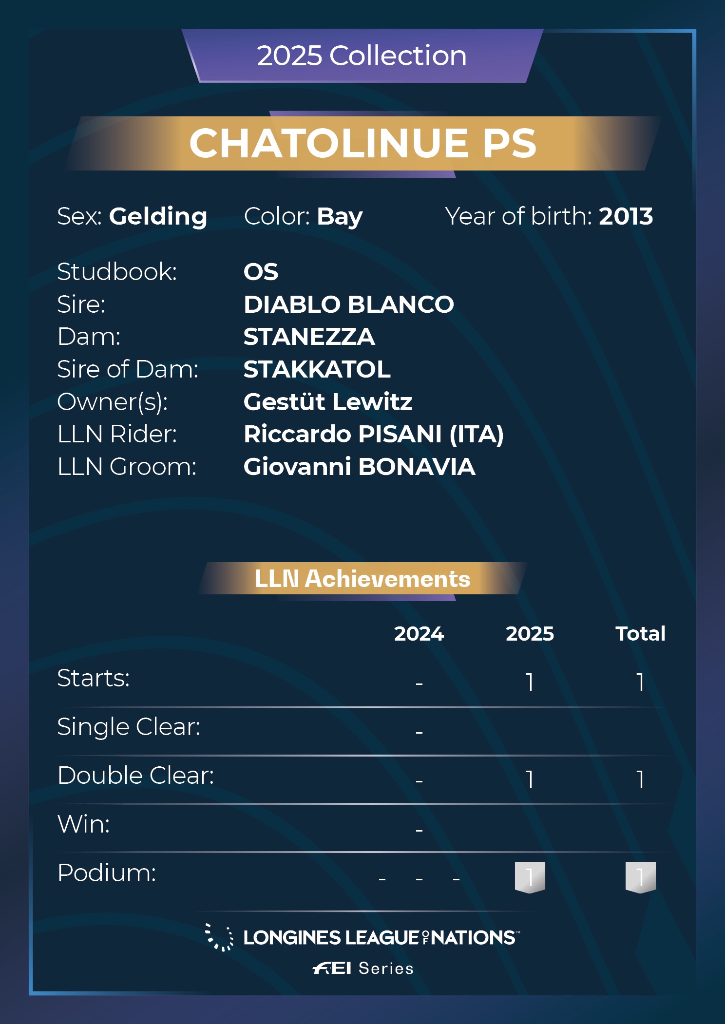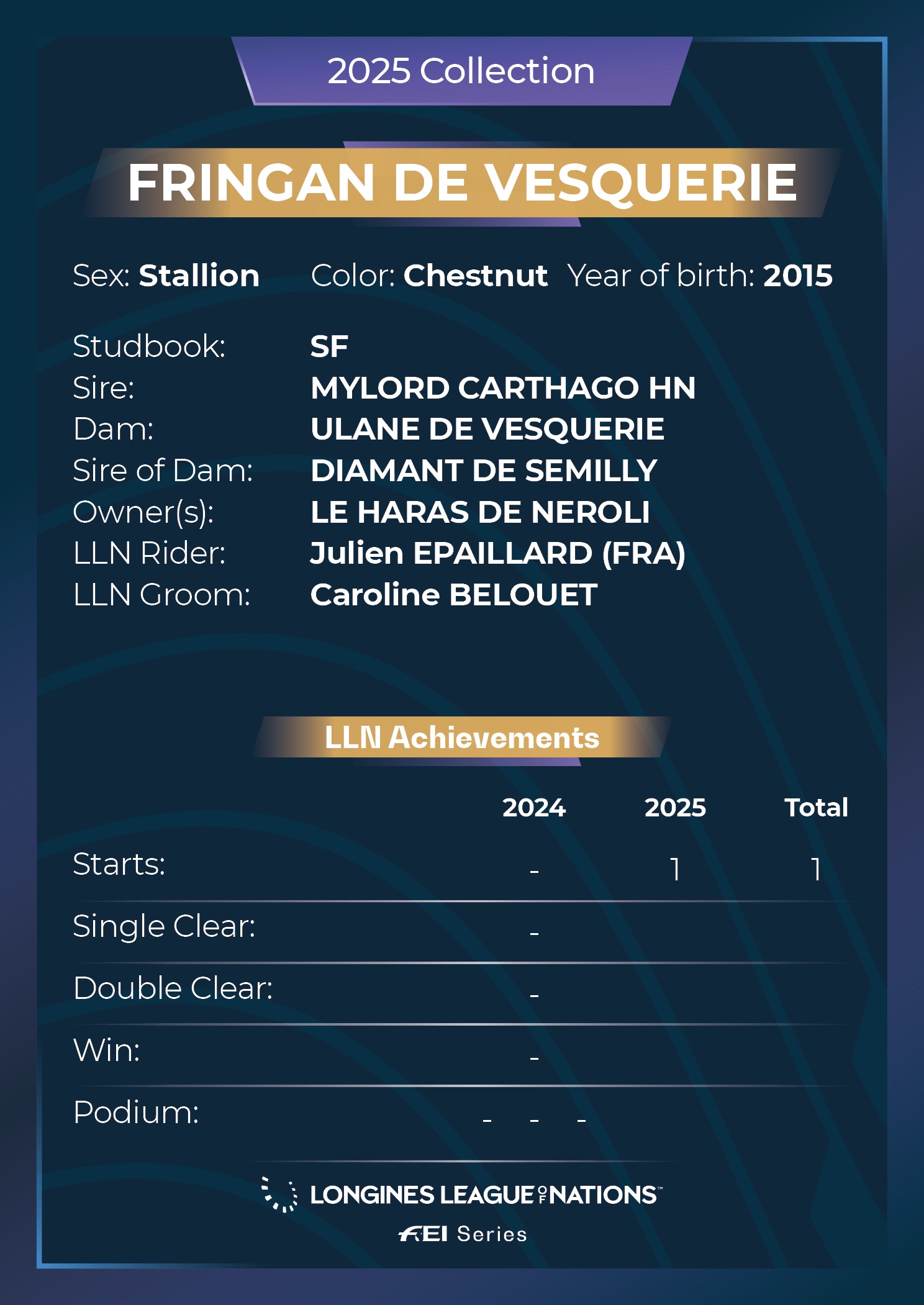 Get to know our Longines League of Nations™ horses and their competition stats.