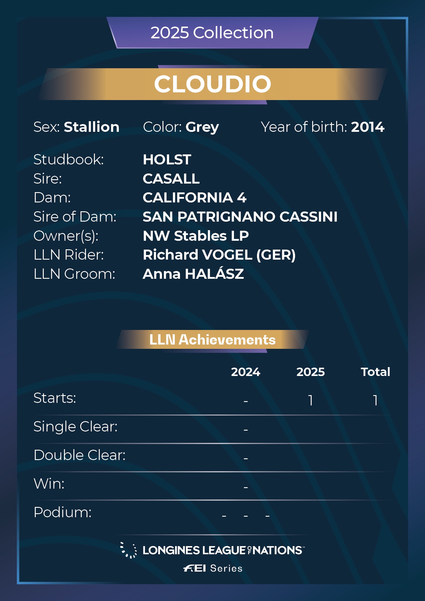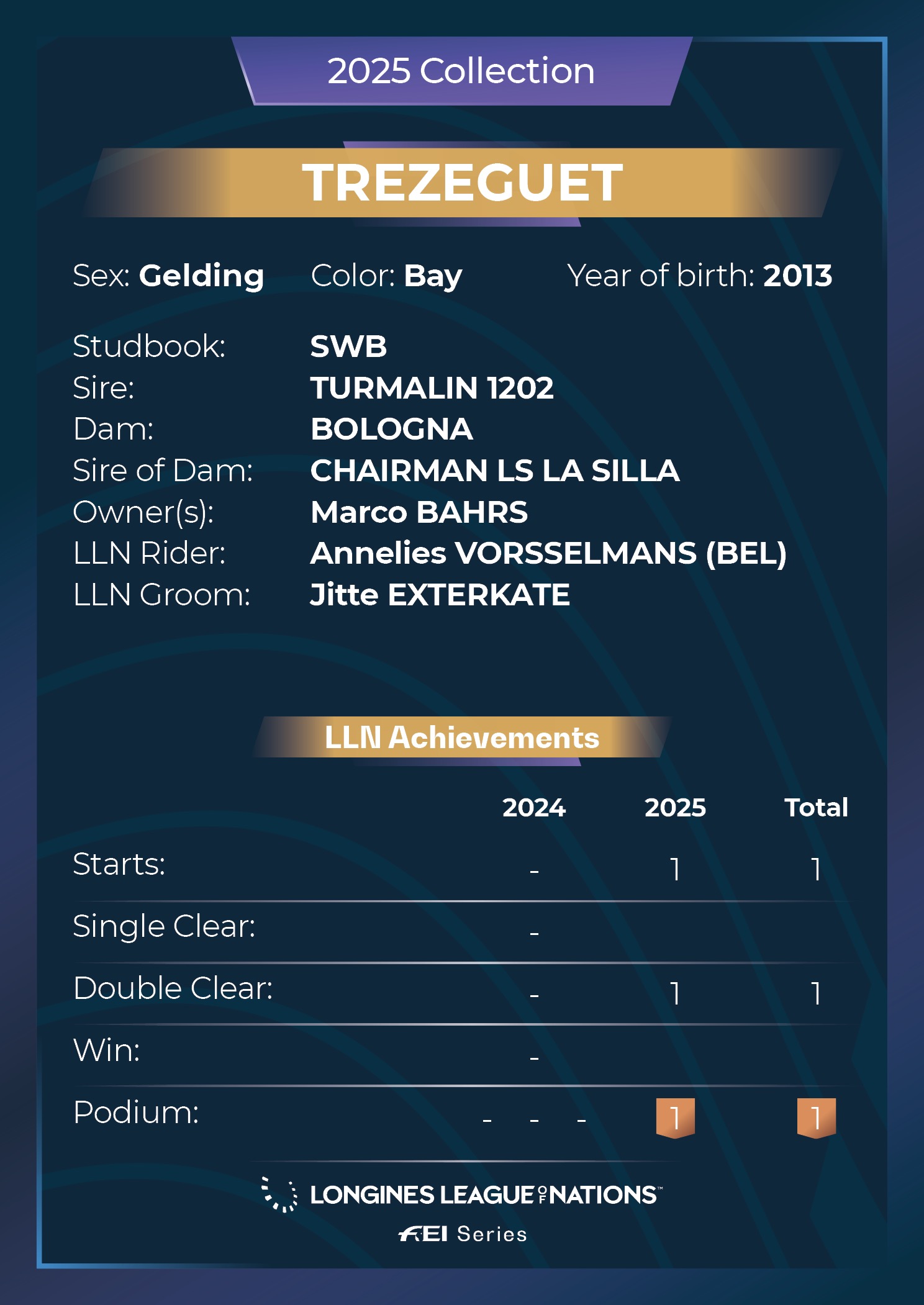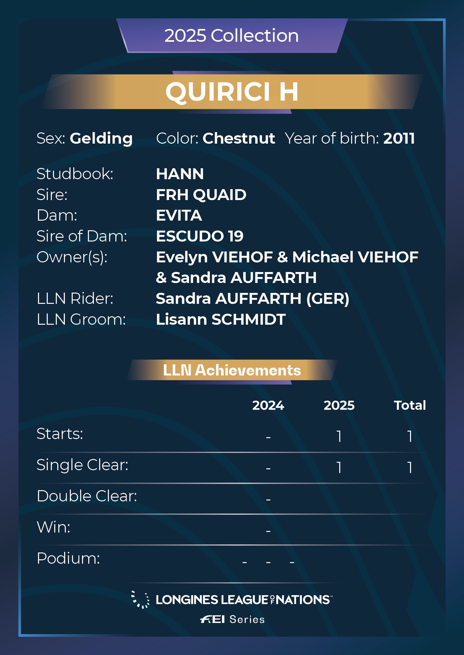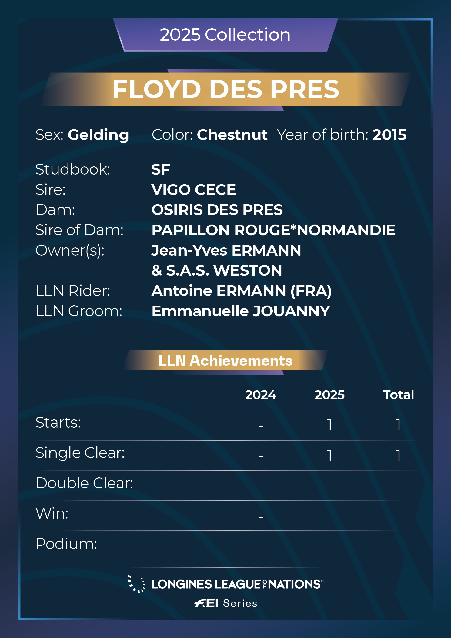 Get to know our Longines League of Nations™ horses and their competition stats.