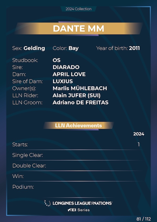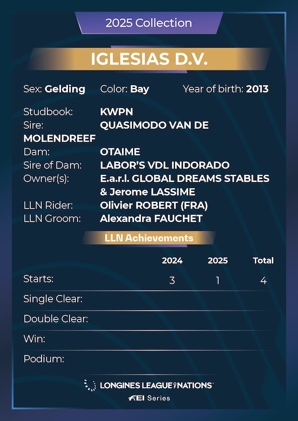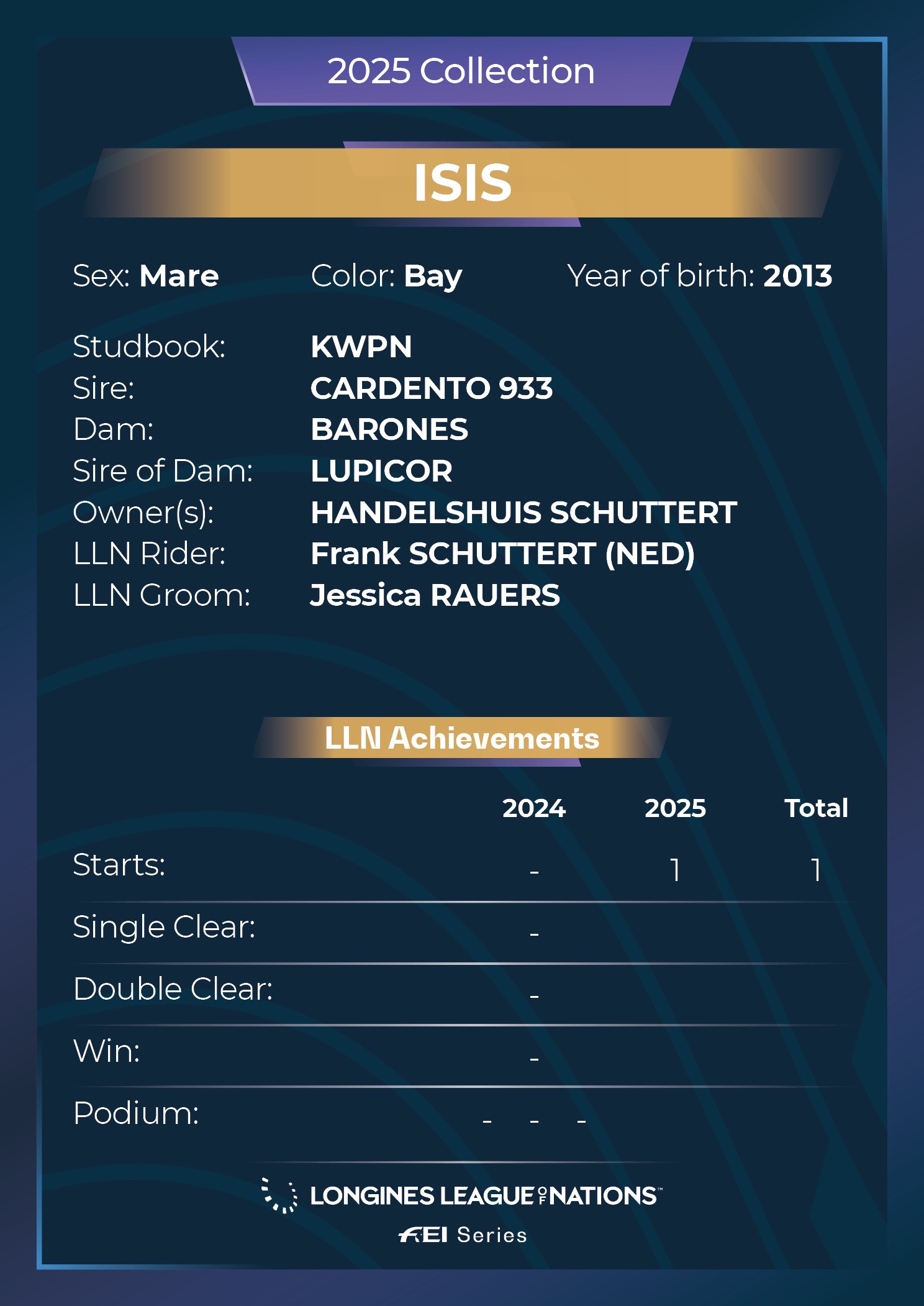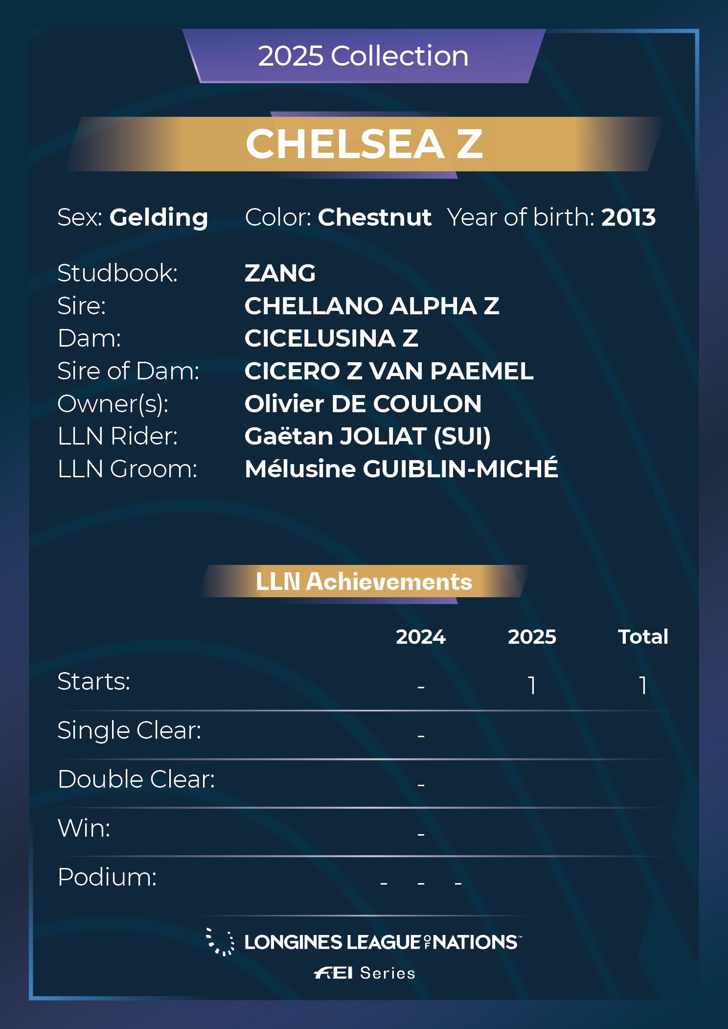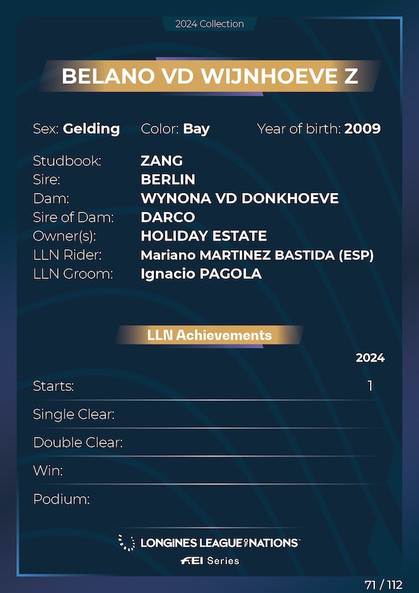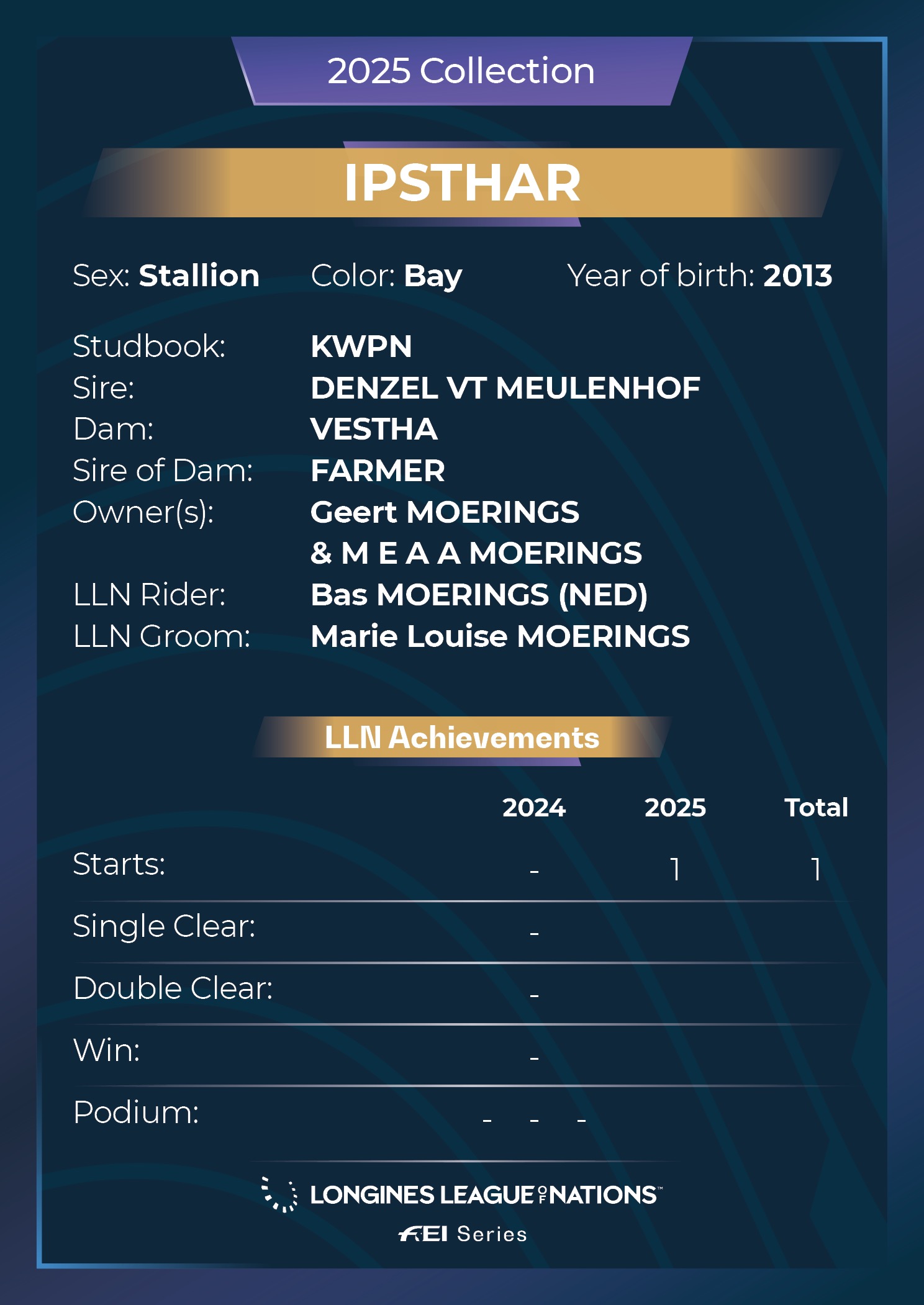 Get to know our Longines League of Nations™ horses and their competition stats.