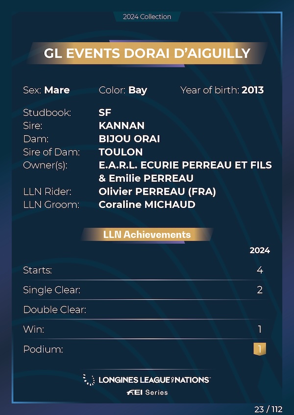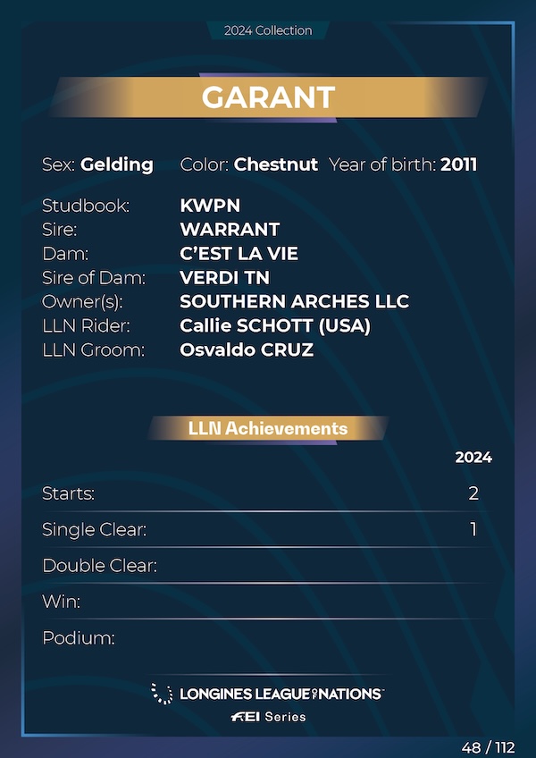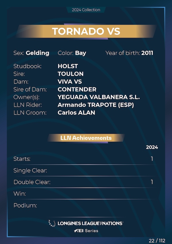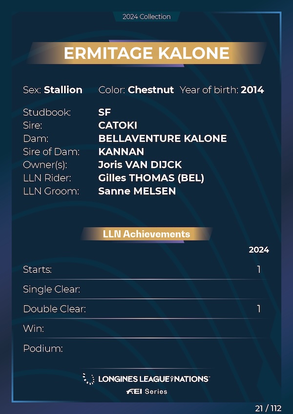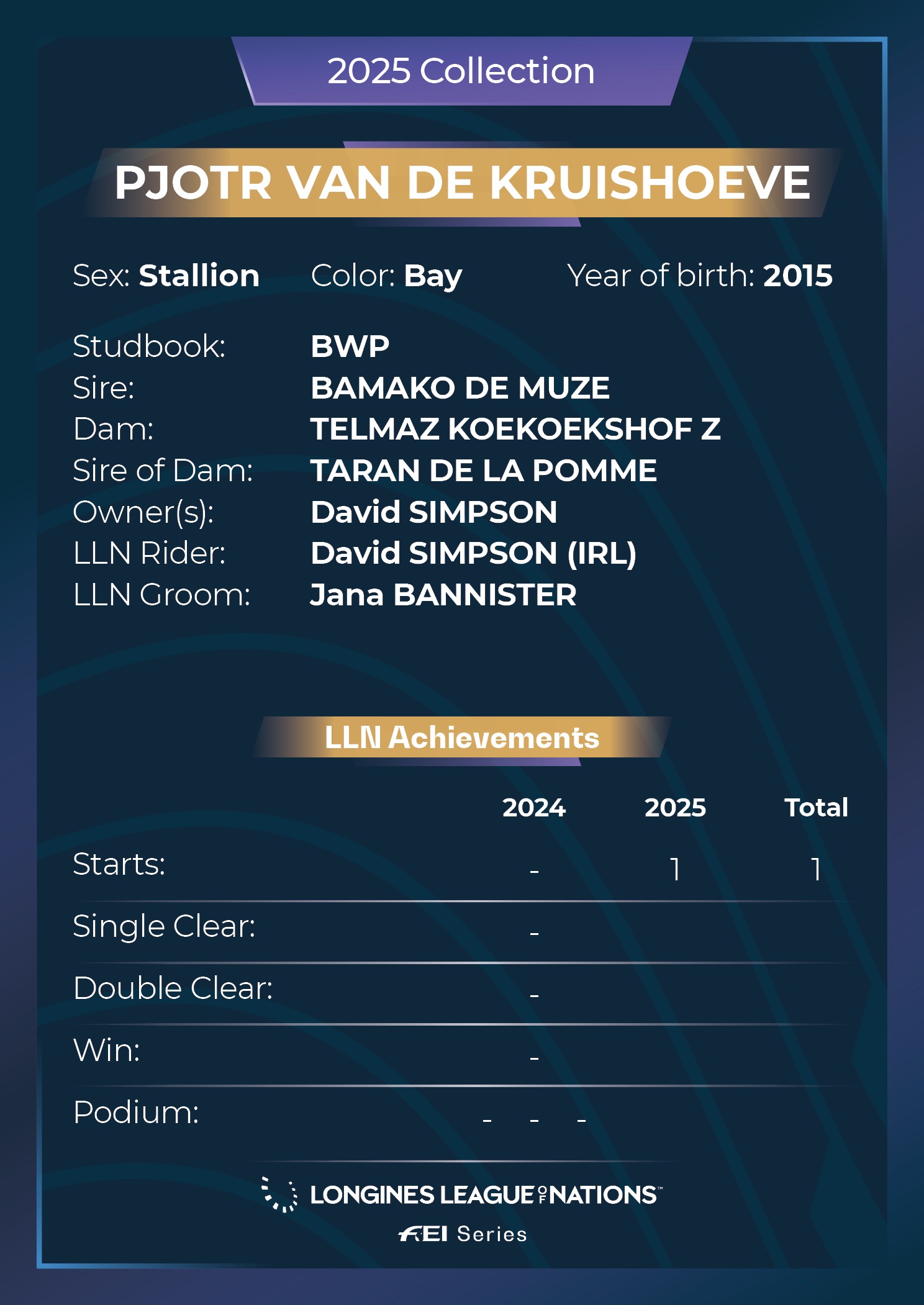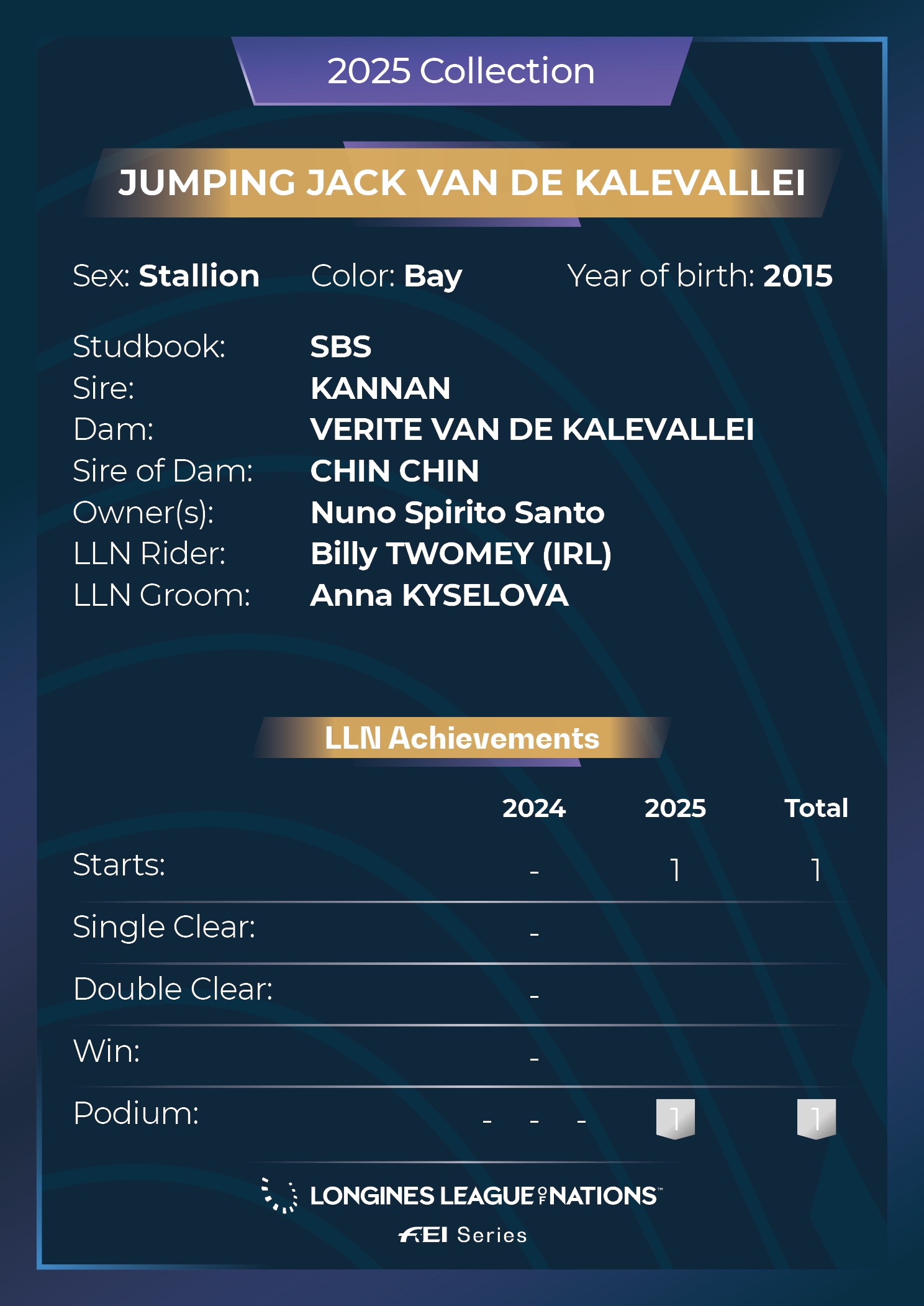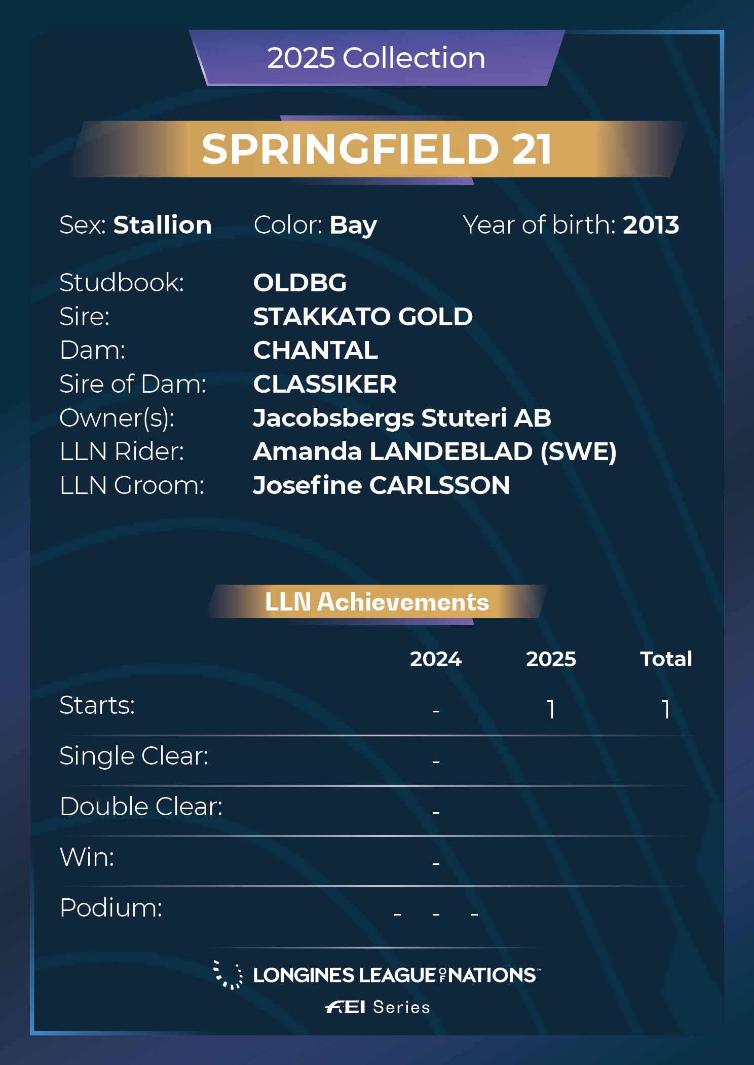 Get to know our Longines League of Nations™ horses and their competition stats.